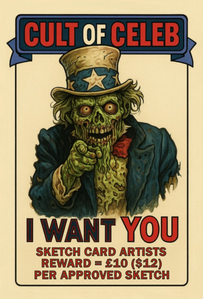 ^ ^ ^ LOOKING FOR TALENTED SKETCH ARTISTS TO WORK ON CULT OF CELEB SKETCH CARDS AND ALSO TO EXPLORE THE POSSIBILITY OF PRODUCING SOME BASECARDS FOR PUBLICATION IN UPCOMING SERIES OF CULT OF CELEB ^ ^ ^